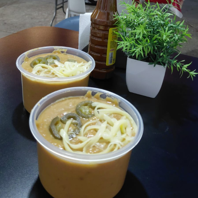 Tortilla de maíz bañada de frijol y queso para nachos, chile jalapeño. Acompañado de crema y salsa. *No se envía por separado.