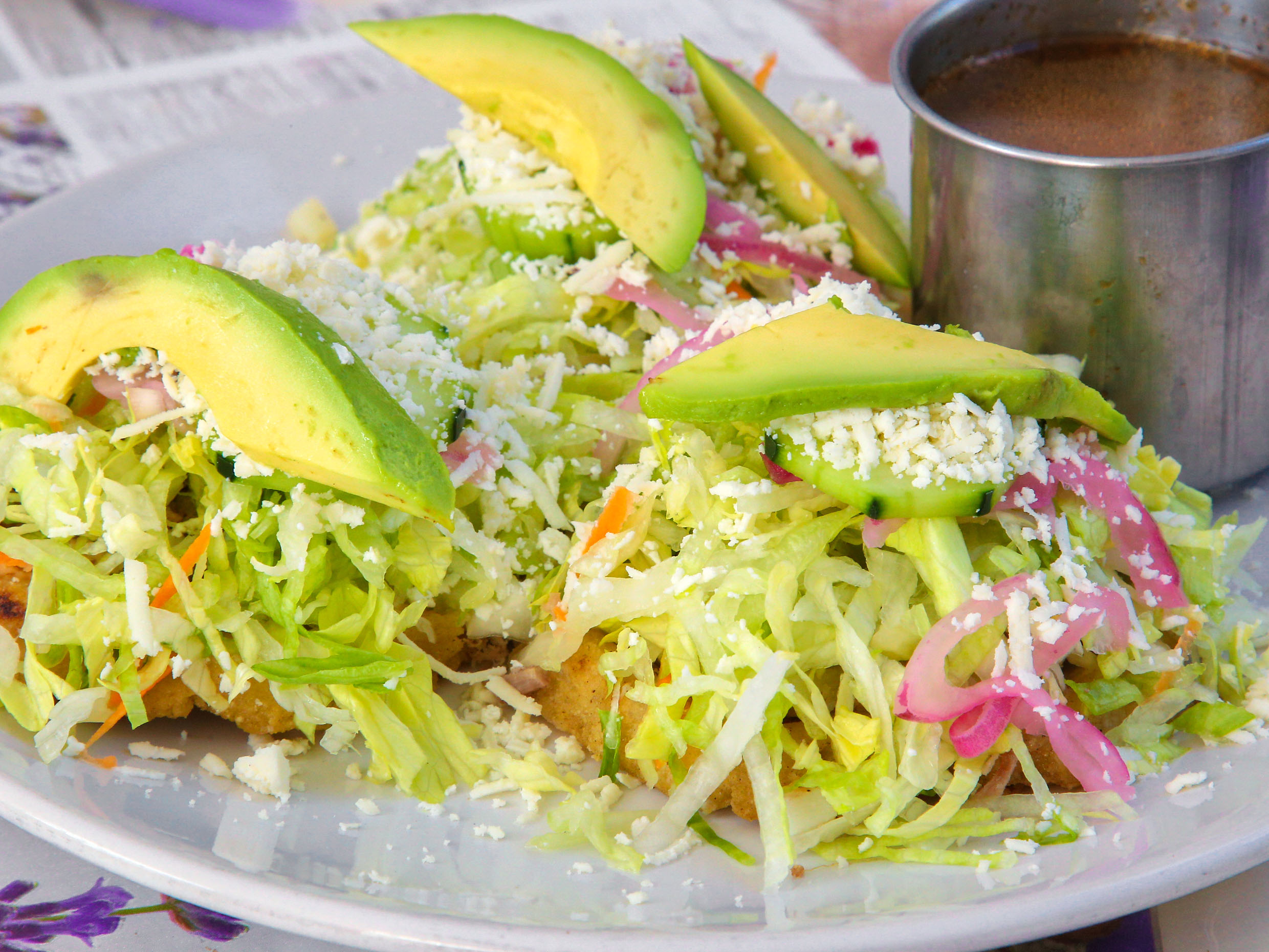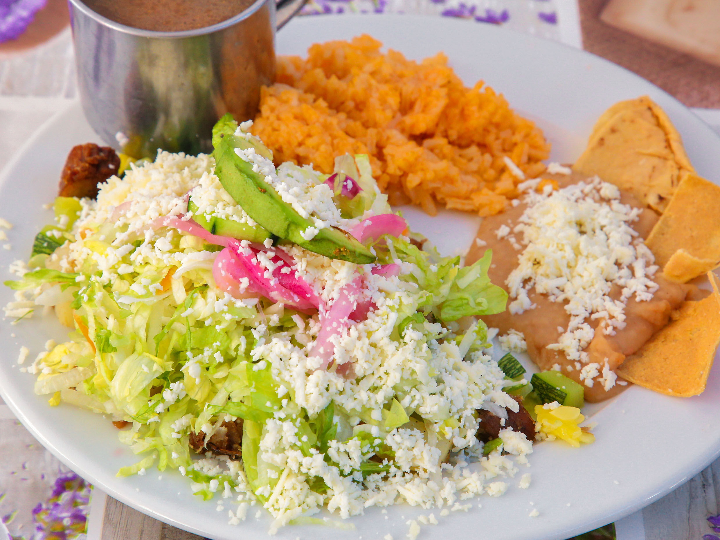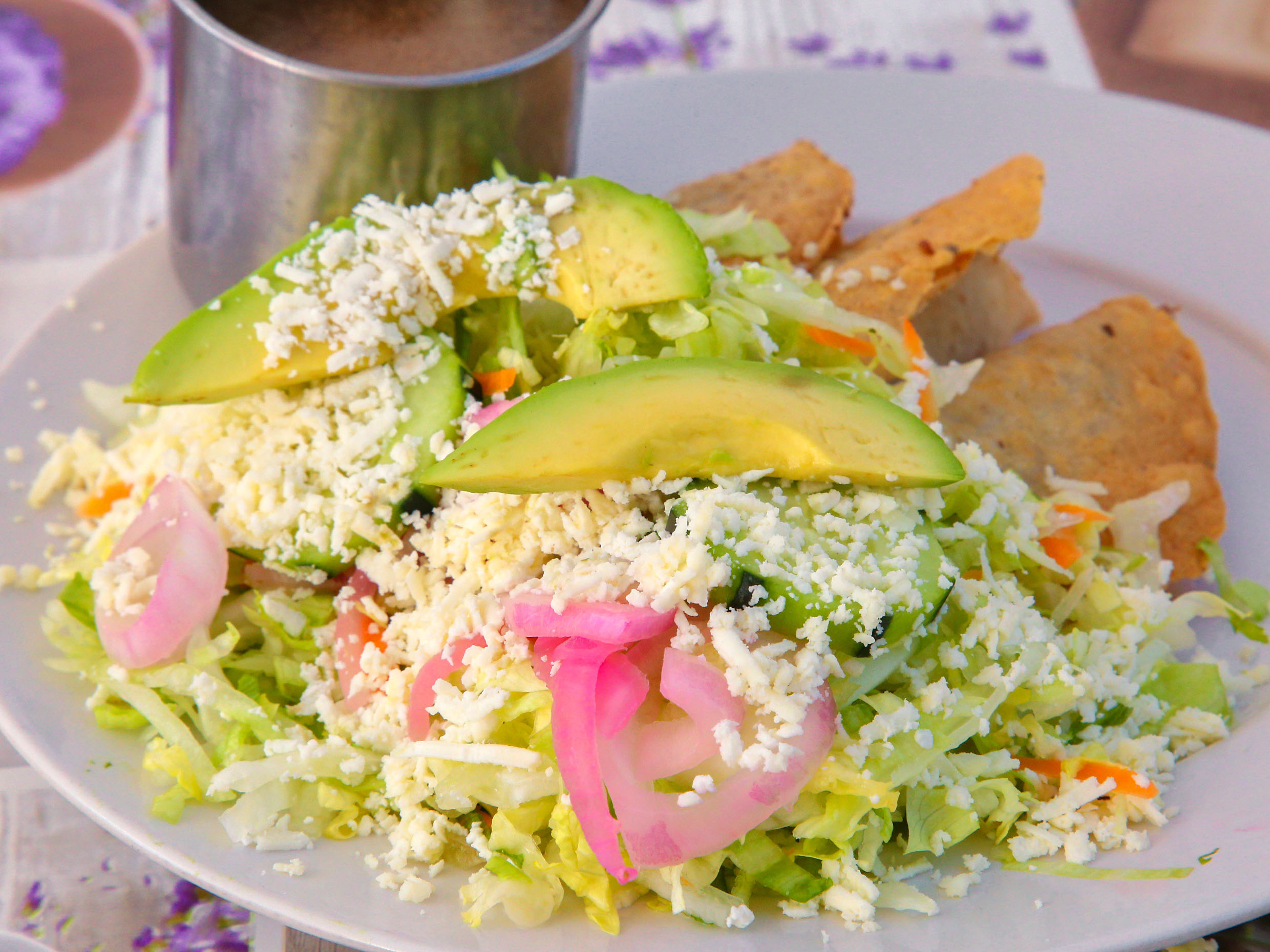 Res con papa, lechuga, cebolla curtida, pepino, aguacate y queso ranchero.