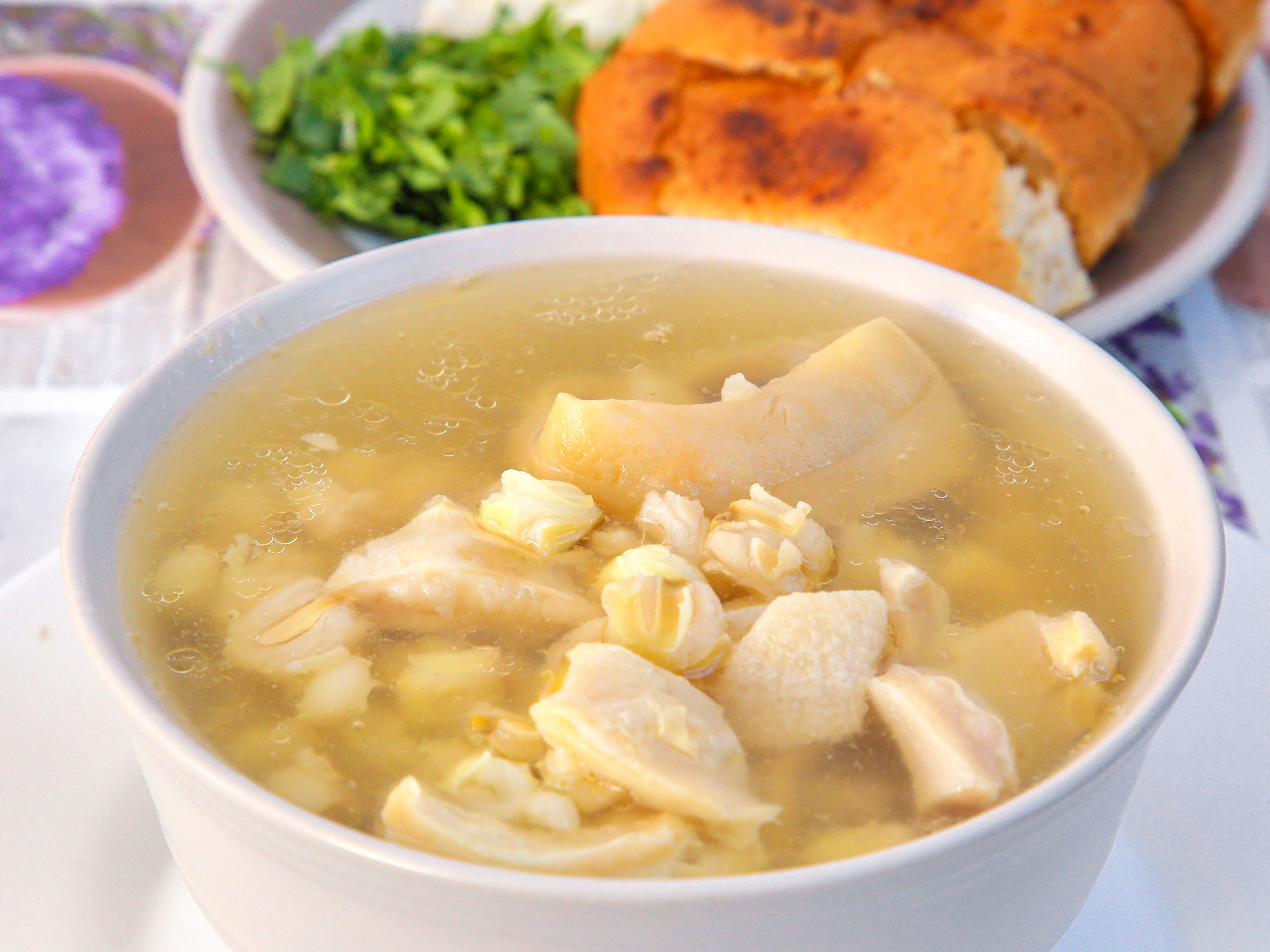 Pieza, de res con papa, lechuga, pepino, cebolla curtida, aguacate, queso ranchero y consomé.