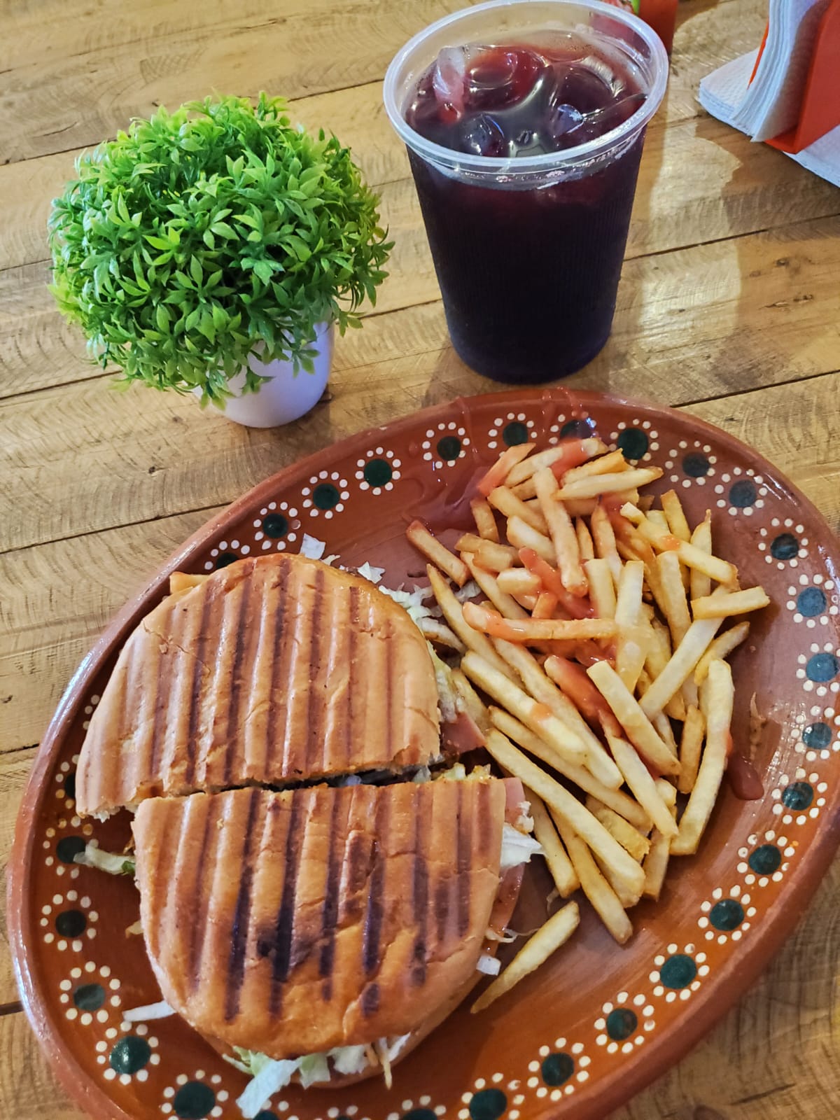 PAN PARA TORTA,COCHINITA PIBILL, JAMON DE PAVO, QUESO AMERICANO, LECHUGA, TOMATE, CEBOLLA CURTIDA, AGUACATE, CON GUARNICION DE PAPAS A LA FRANSESA Y CONSOME.