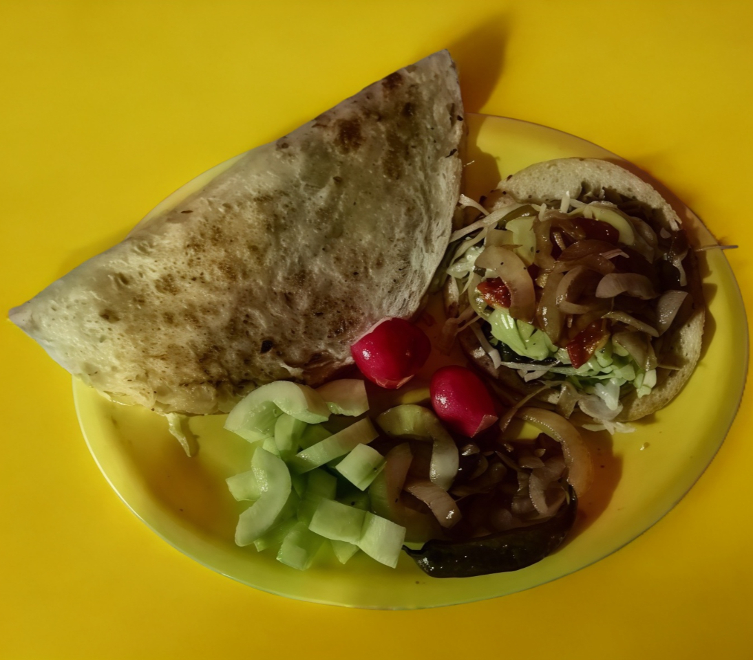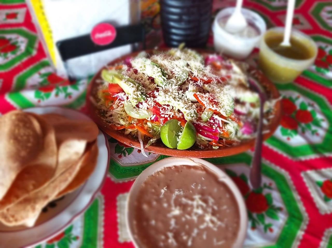 1 Pieza a elegir, elige la carne, lleva lechuga, zanahoria, cebolla, tomate, pepino, aguacate, queso rallado, crema, salsa, frijol y consomé.