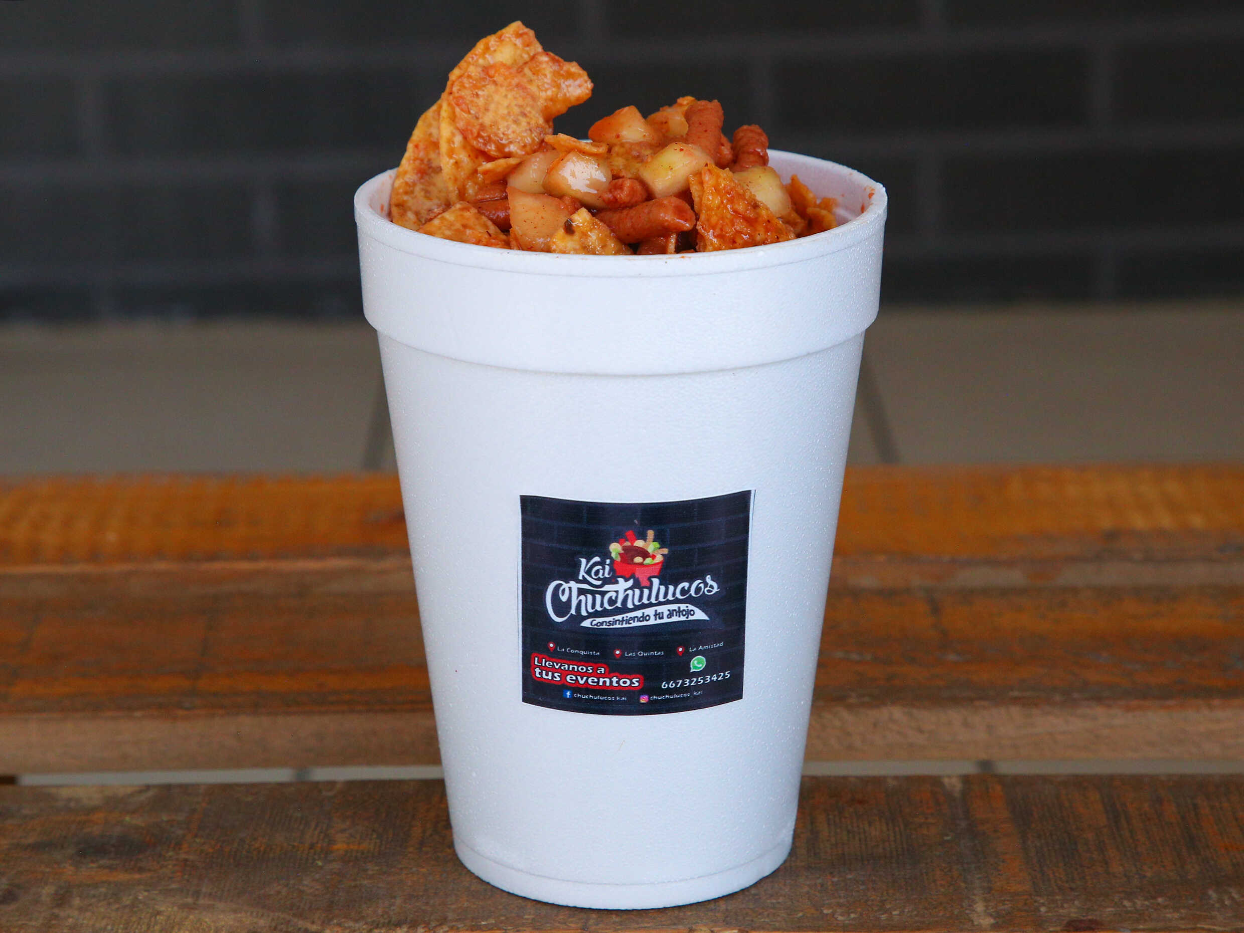 Pepino, salchicha, cacahuate, realito, cuerito, churros, kermato, sabritas a elegir y salsa chuchulucos