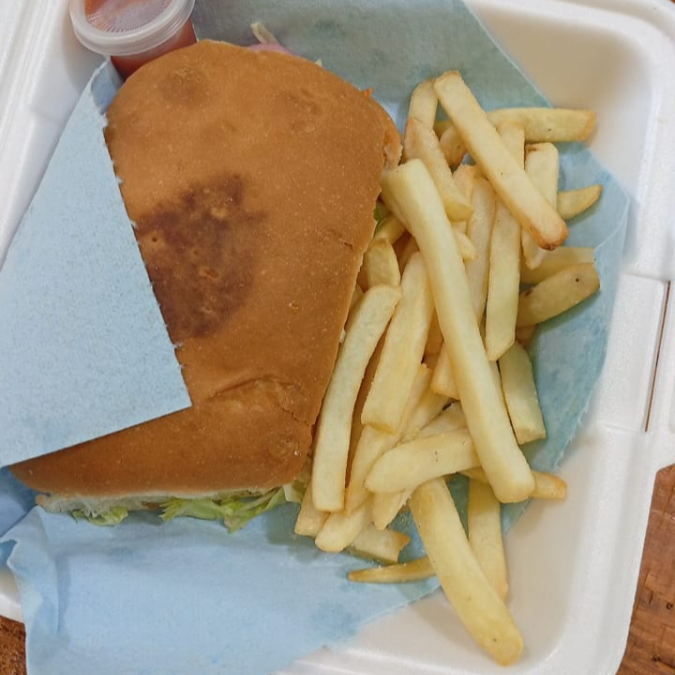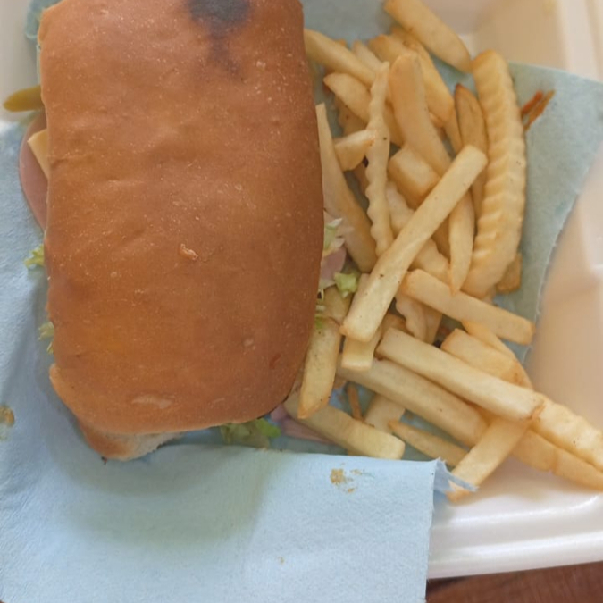 Sándwich caliente de jamón con queso, lechuga y aderezo especial.
