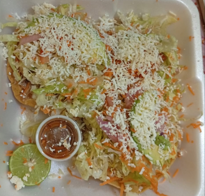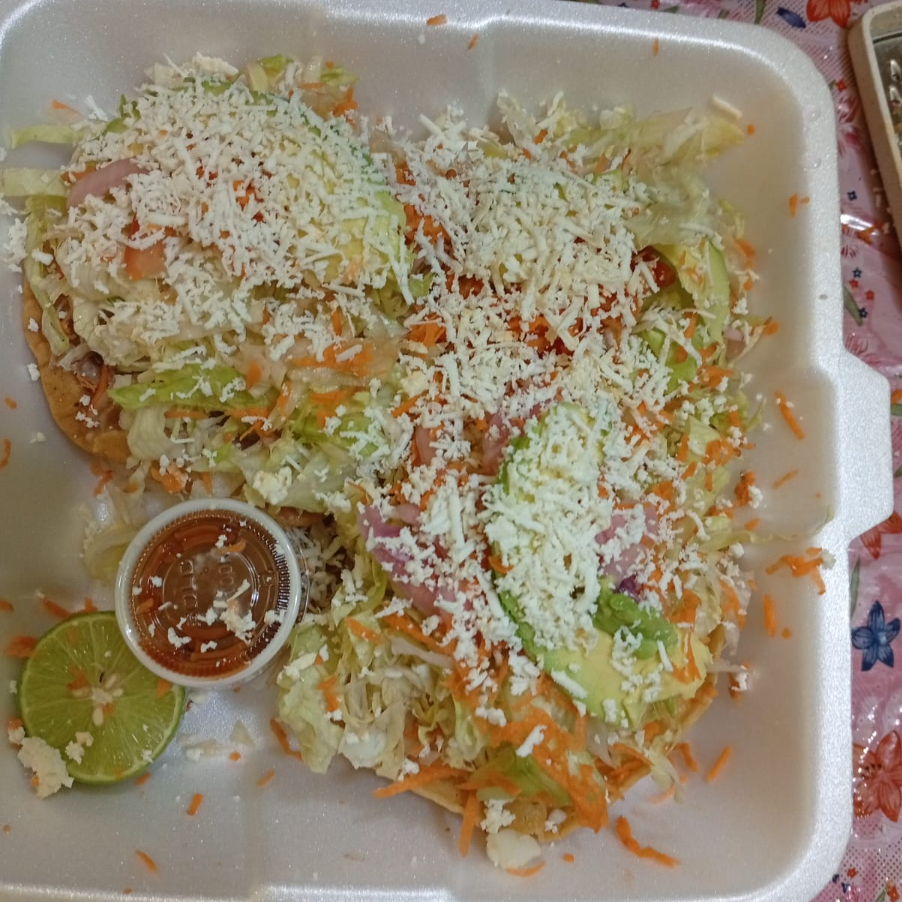 Tres tostadas crujientes con guiso a elegir y acompañamientos.