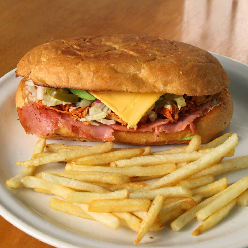 Cochinita, jamón, queso y papas