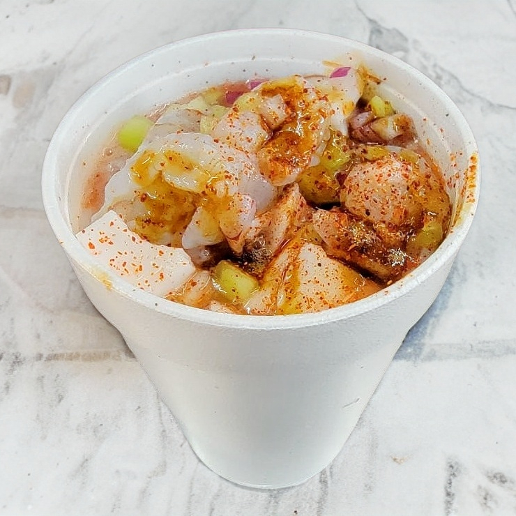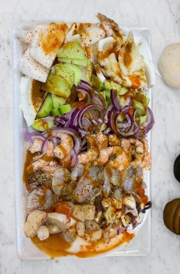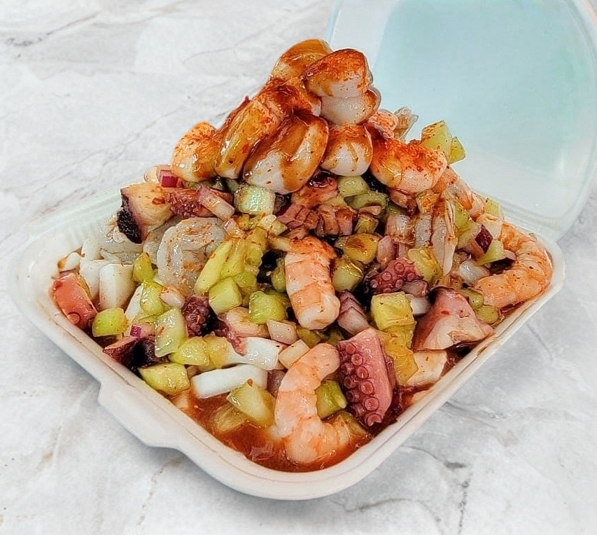 camarón cocido, camarón aguachile, pulpo, callo lobina y atún fresco