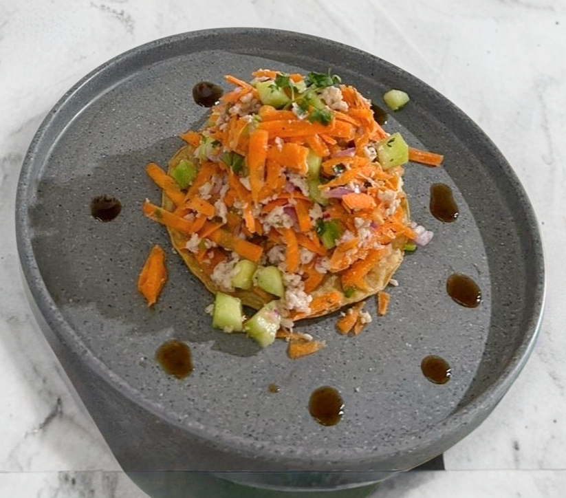 Pescado sierra molida, zanahoria,pepino, cebolla ,cilantro y su equisita salsa verde
