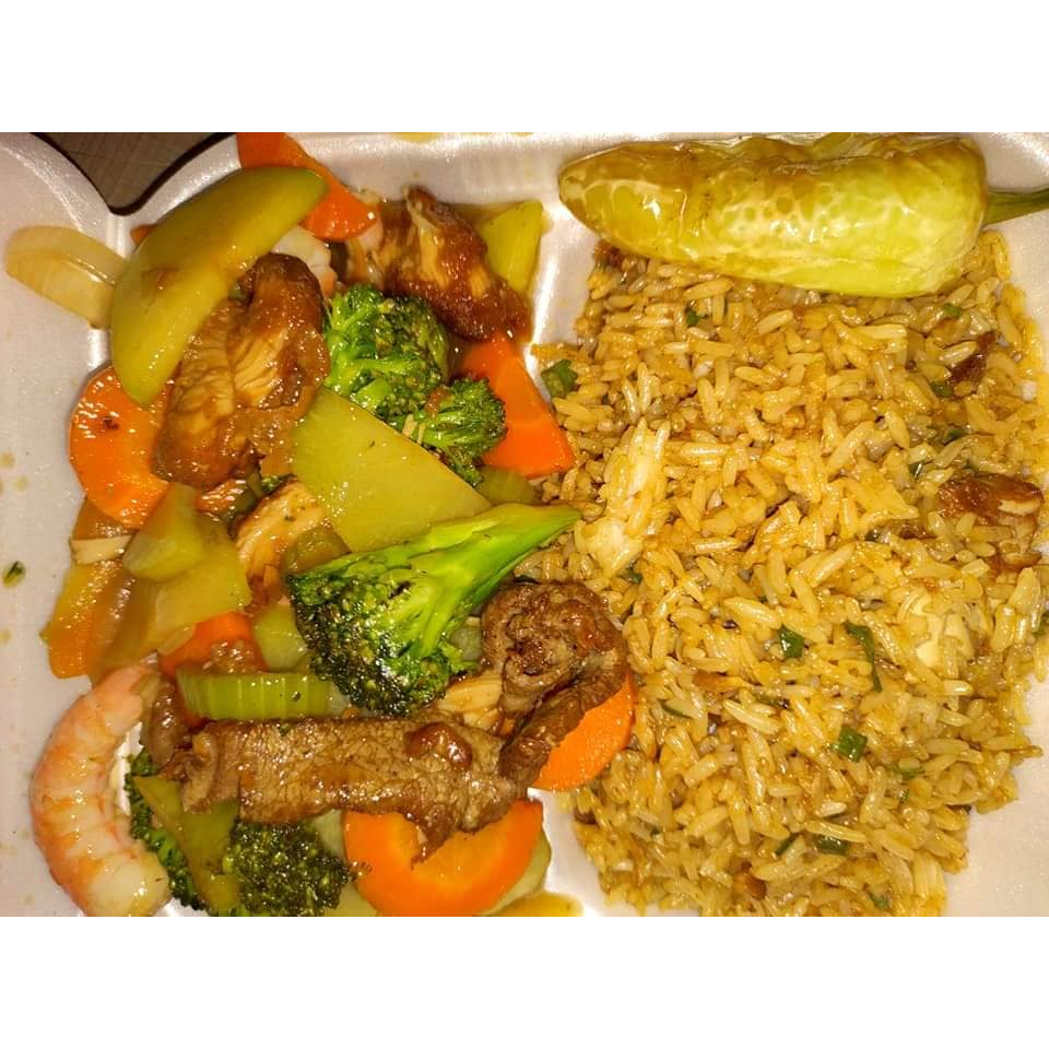 Arroz frito y chow meinn de res