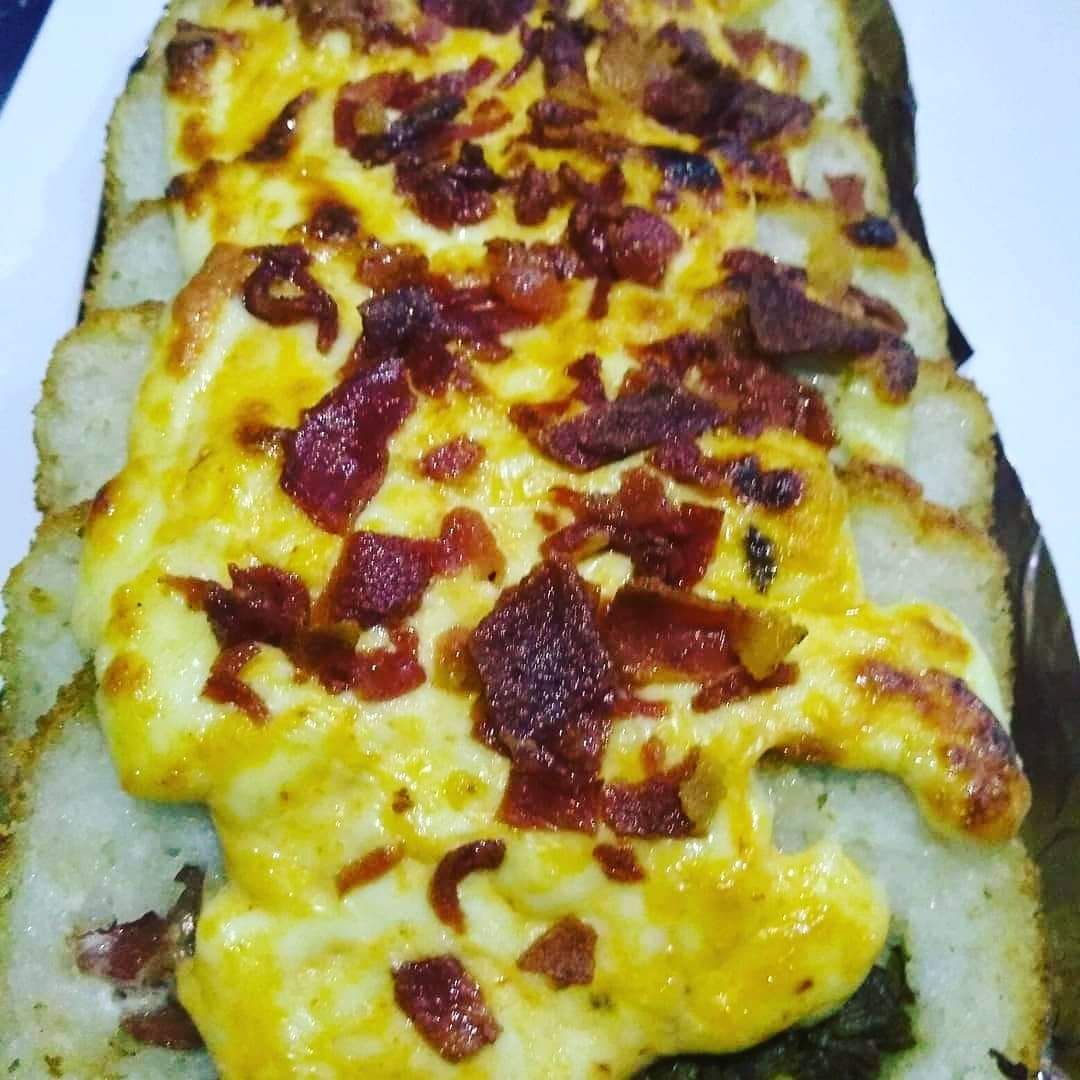 camarón, tocino, surimi americano, fila y aguacate, afuera tampico y anguila (empanizado