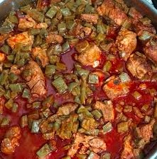 Costilla de puerco en chile colorado con nopales, acompañado de dos guarniciones.