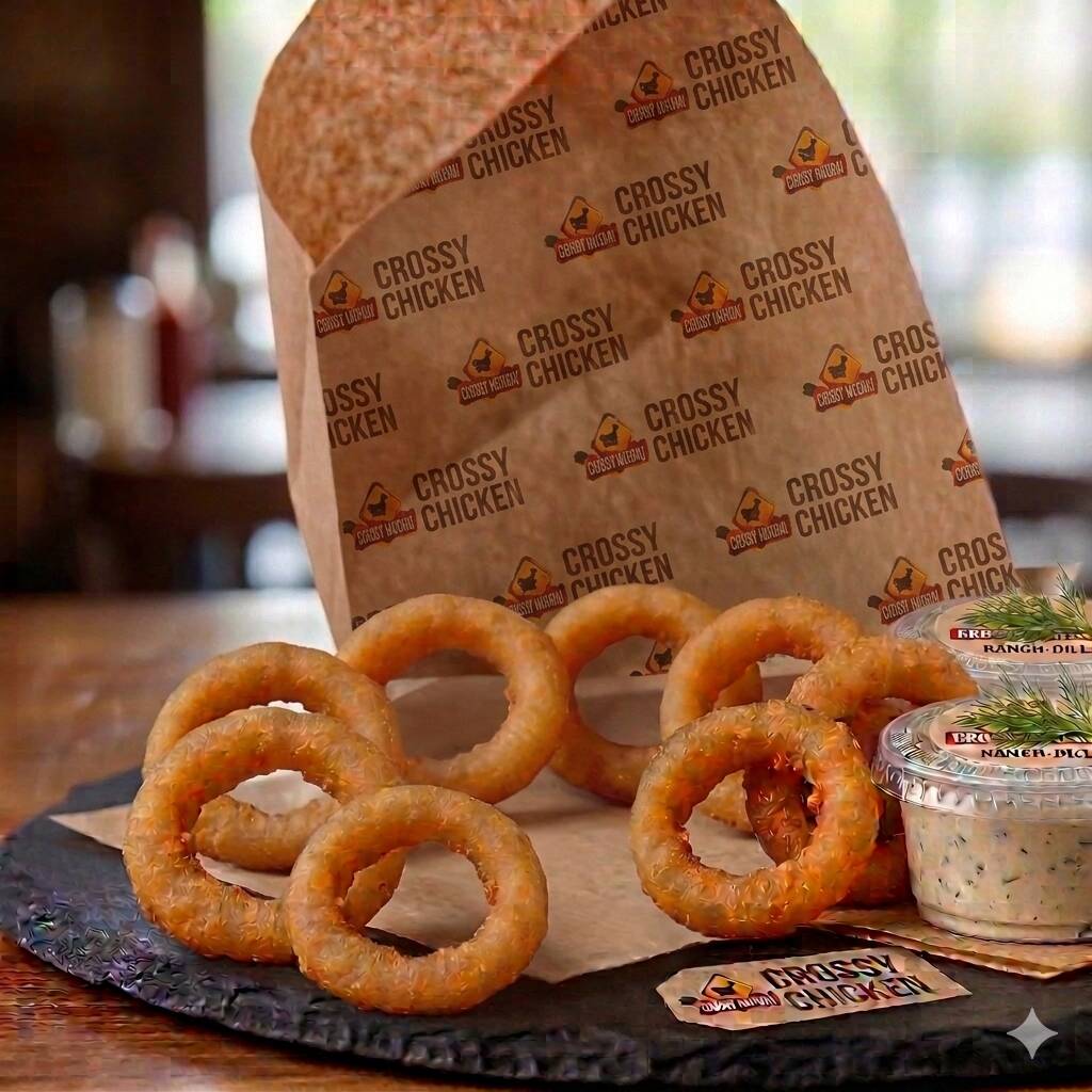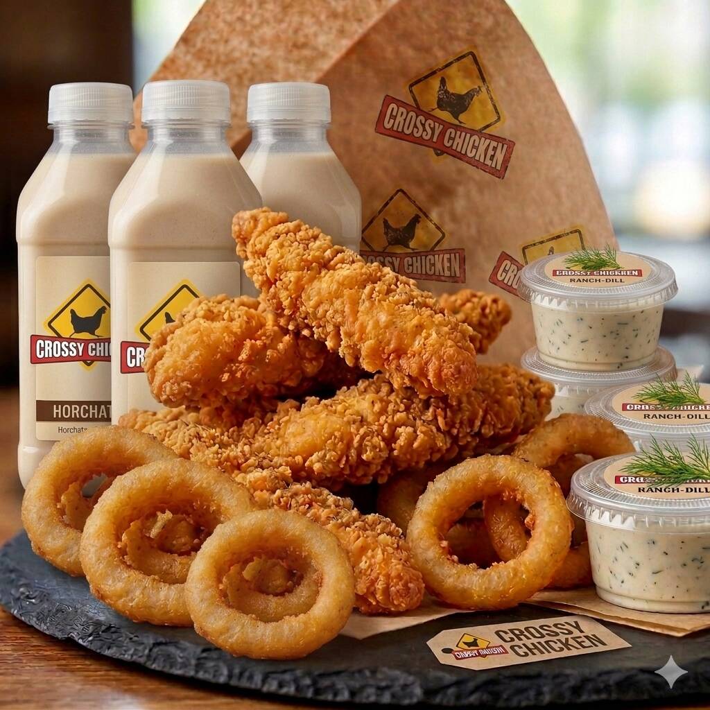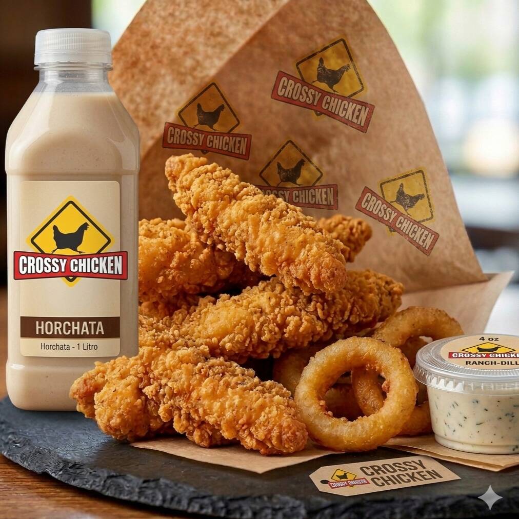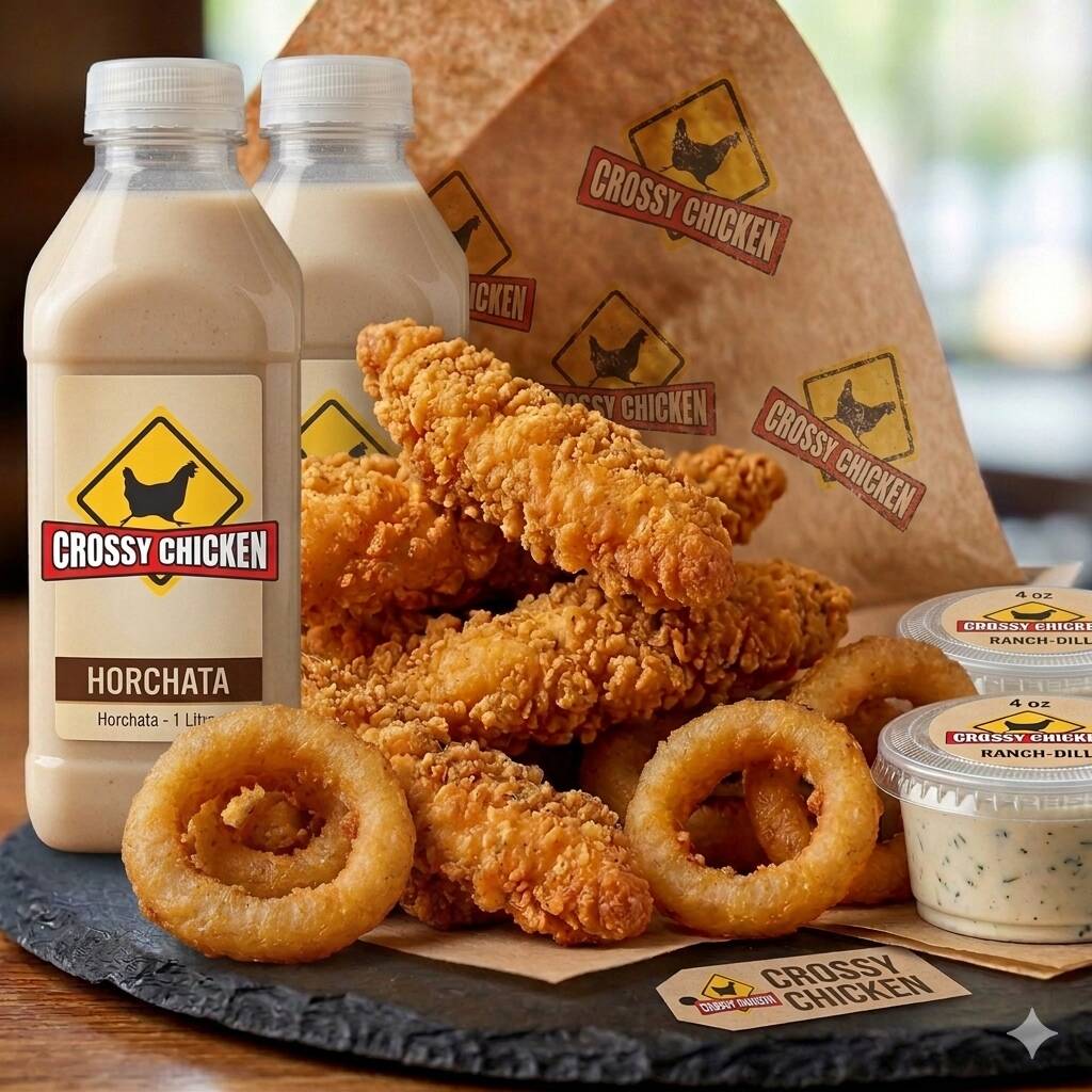 3 Tenders GIGANTES más 5 aros de cebolla EXTRA crujientes y 1 Aderezo (Chipotle cremoso o ranch) de 4 oz