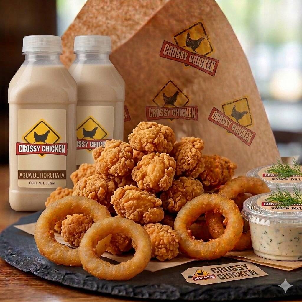 8 Tenders 6 Aros de cebolla 2 Aderezos 2 Agua de sabor