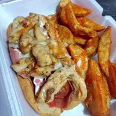 250 gr. de pechuga de pollo en trozos bañados en salsa a elegir BBQ, hot BBQ, búfalo o mango habanero, acompañados de apio, zanahoria y porción de papas.