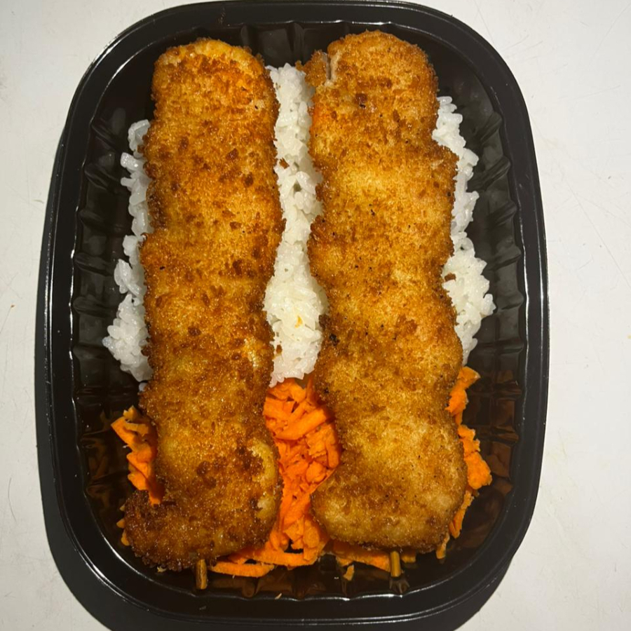 5 pz de bolitas rellenas de tampico, philadelphia y queso chihuahua. acompañados de arroz blanco y zanahoria