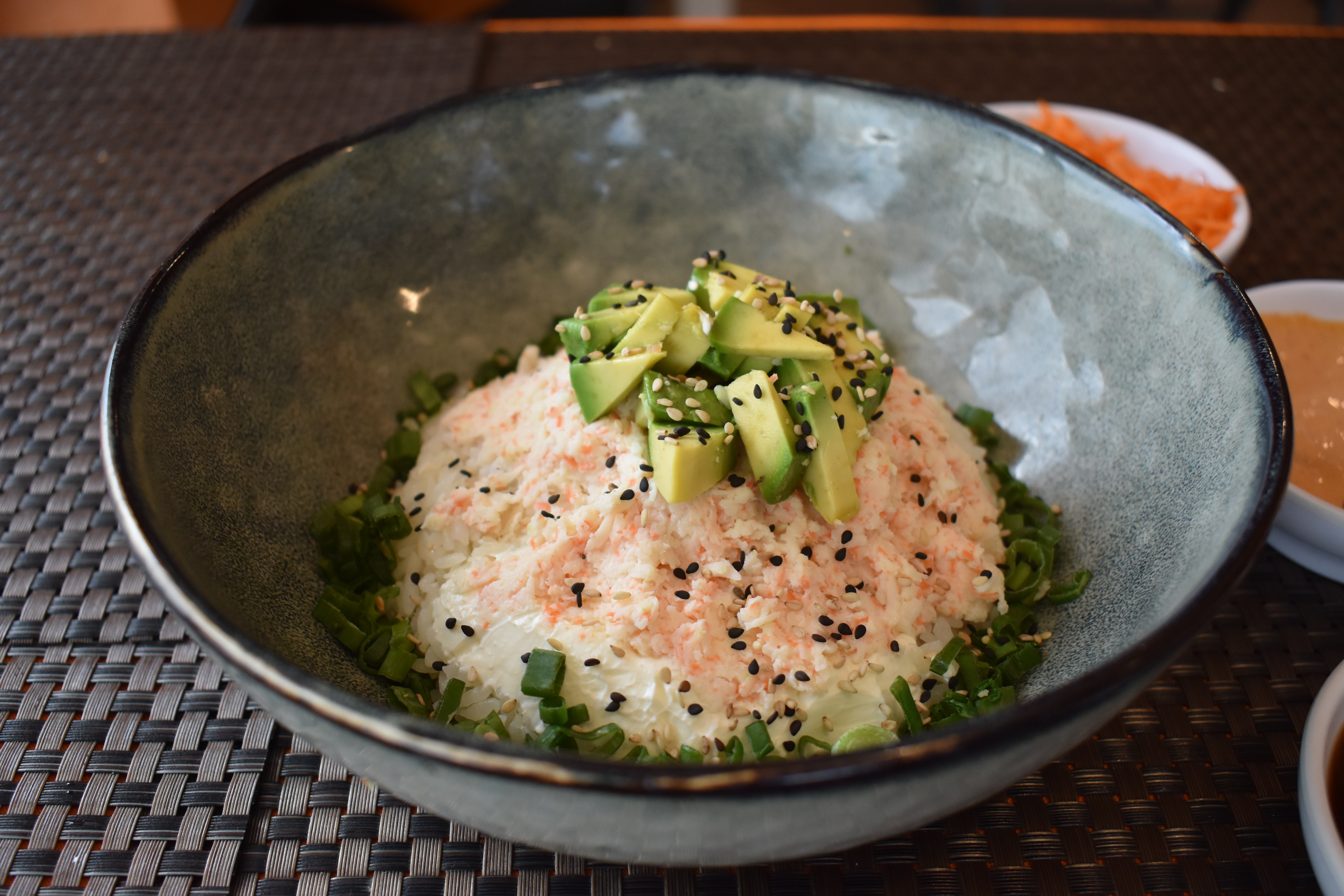 Arroz blanco con queso crema Philadelphia y tampico, coronado con aguacate, espolvoreado con ajonjolí.