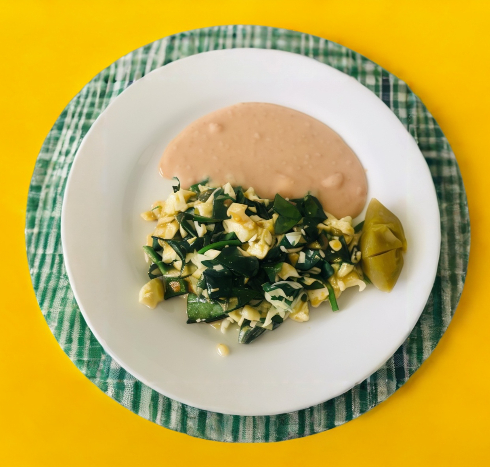 Huevos con espinaca, ensalada o frijol.