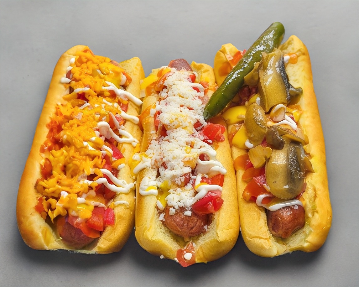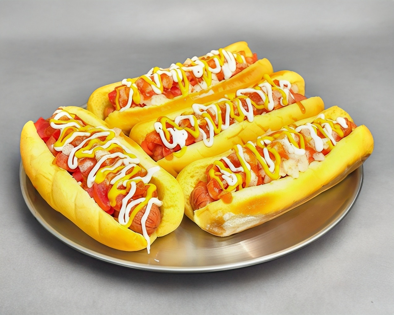 3 Hot Dogs Elaborados con Pan bimbo, Salchicha de pavo y tocino