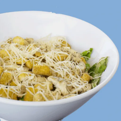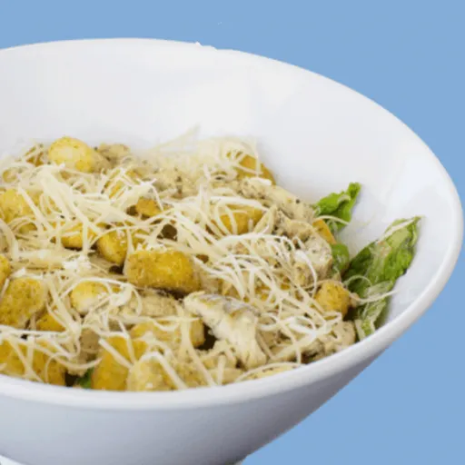 Ensalada tradicional de mix de lechugas, parmesano y crutones, con pollo a la plancha (80gr) acompañada de aderezo césar.