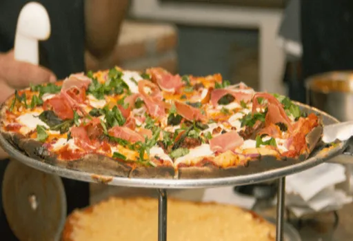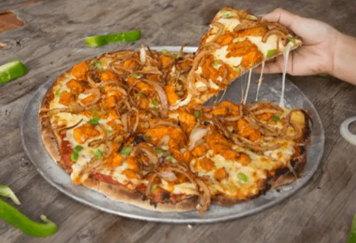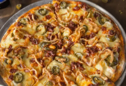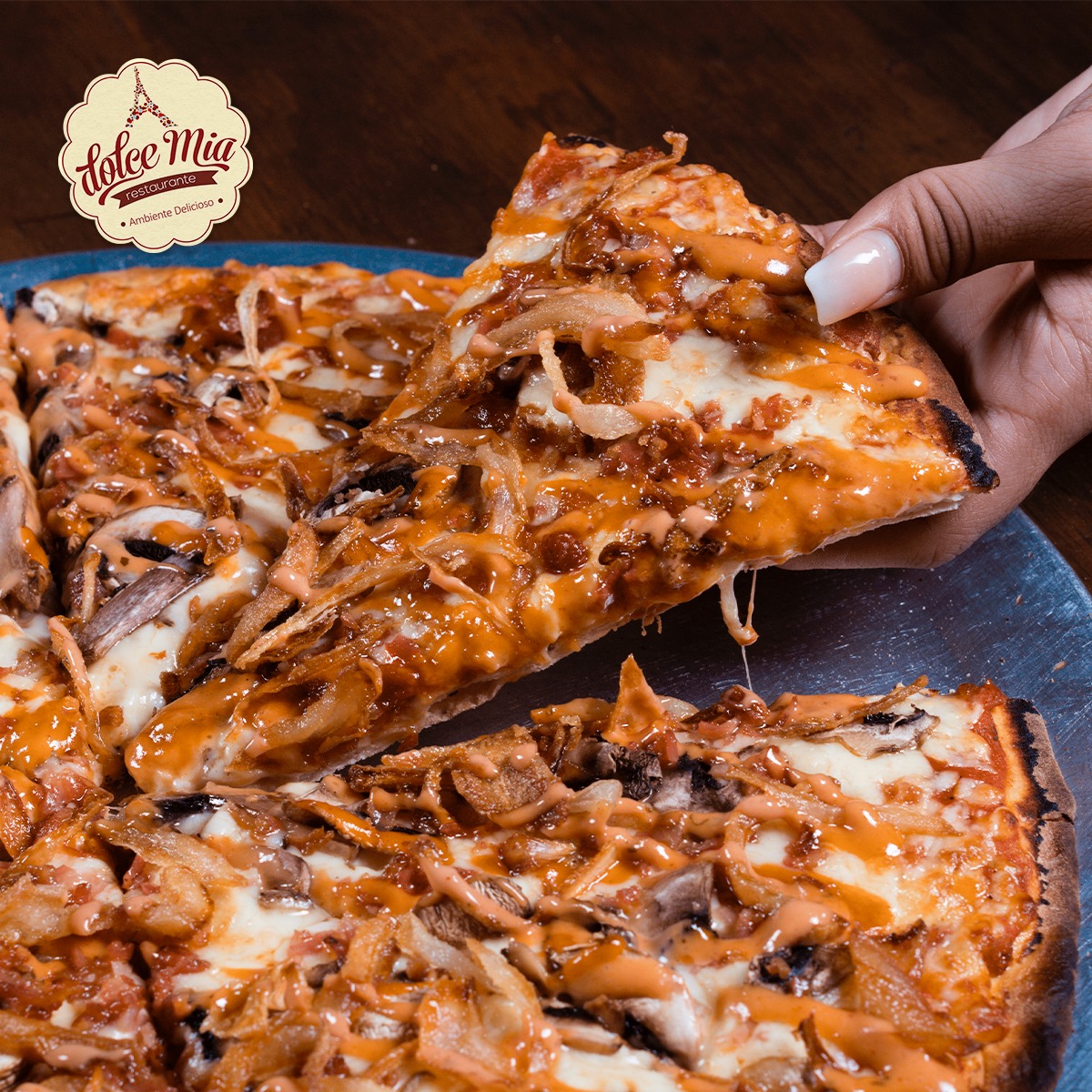 Queso mozarella fresco, jamón serrano (50gr), finas tiras de cebolla morada sobre nuestro tradicional mix de quesos y salsa pomodoro de la casa y una salsa especial de tomate deshidratado.