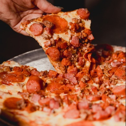 chorizo español, tocino, salami, peperoni, salchicha ahumada y carne molida