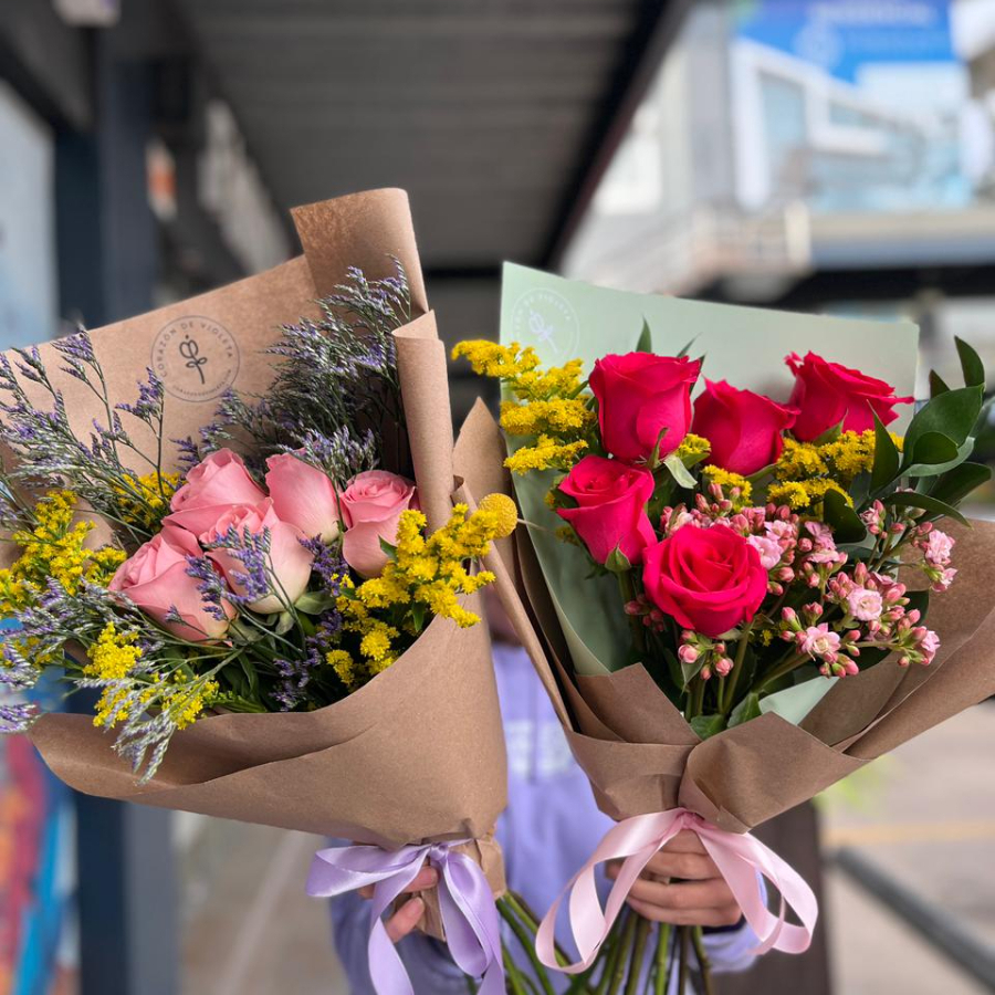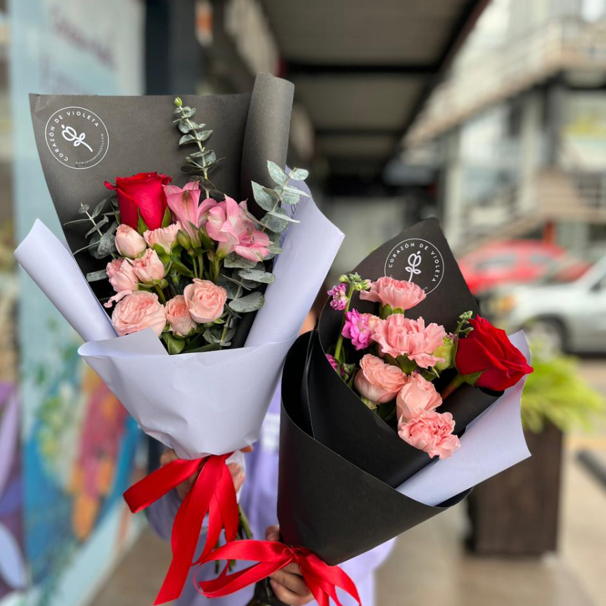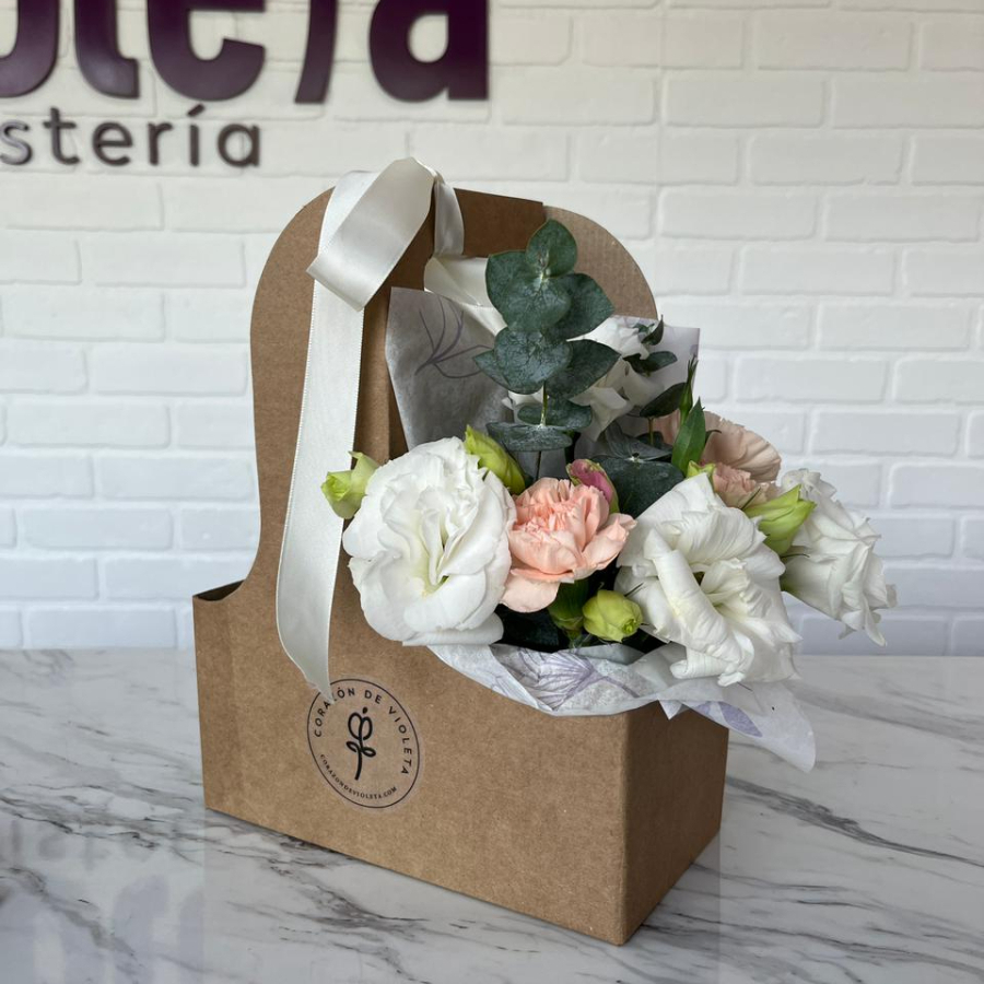 Caja con arreglo de flores + una bebida de Dolce Mía; selecciona tu favorita:)
