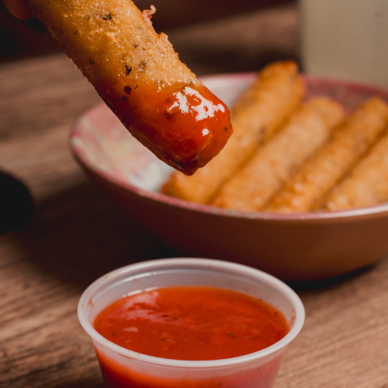 5pzas de dedos de queso recién hechos, acompañados de aderezo ranch o pomodoro.
