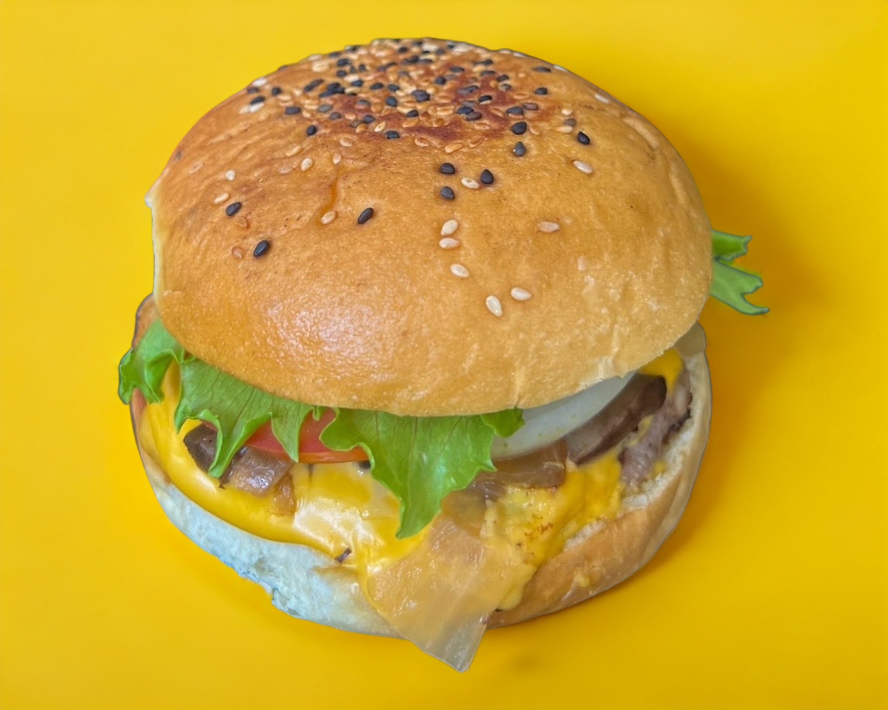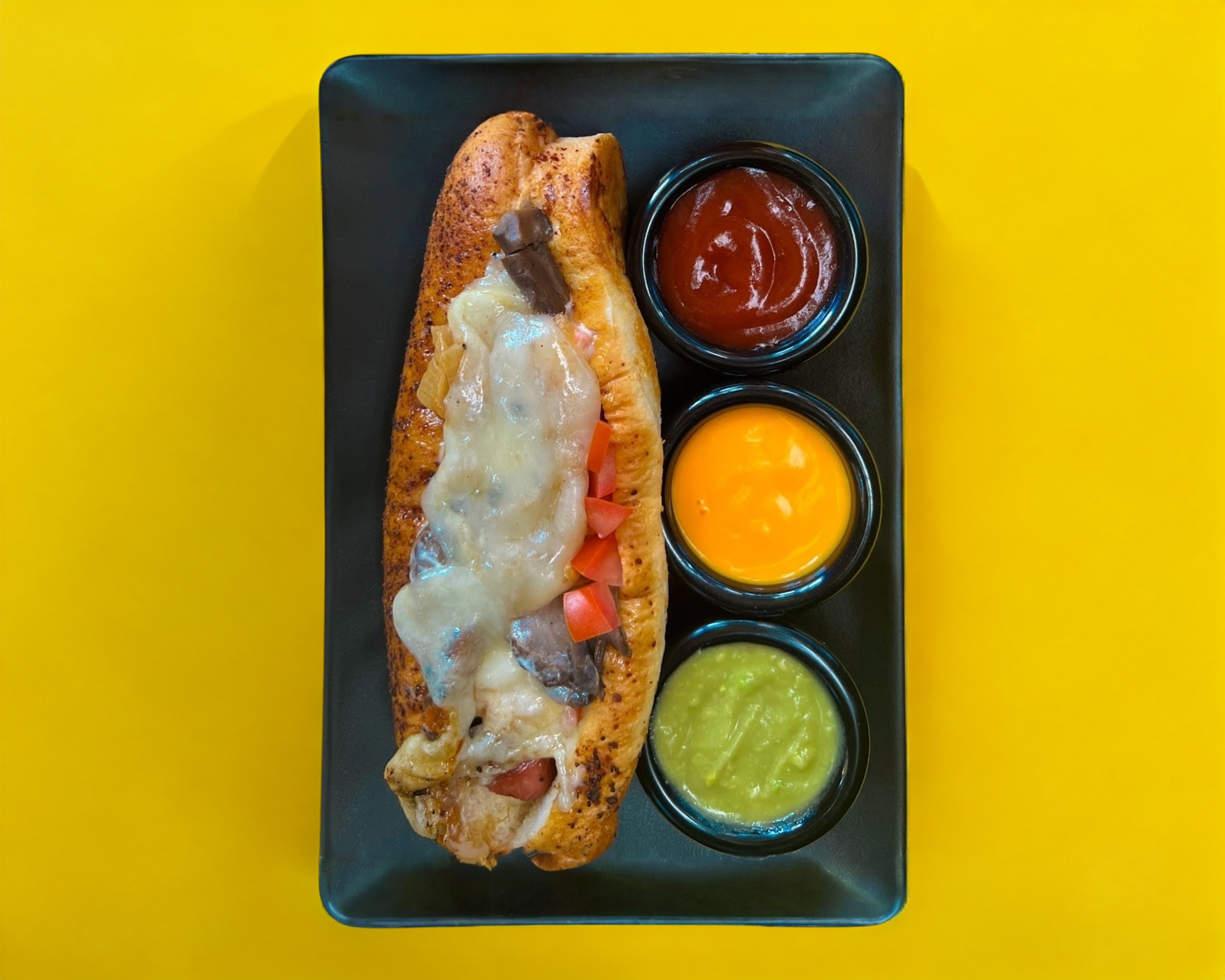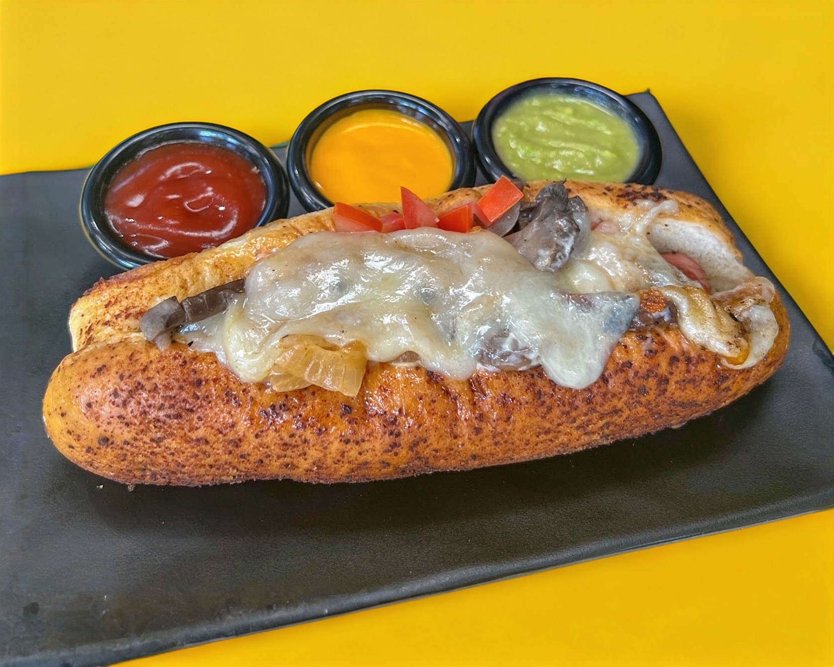 Carne de res casera, queso americano, queso manchego, queso Philadelphia y papas, pan a elegir clásico o casero.