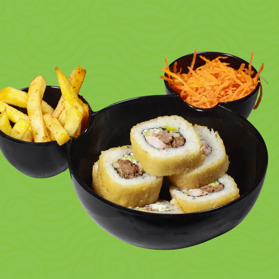 1/2 rollo sin alga acompañado de papas papas fritas gelatina y juguete sorpresa