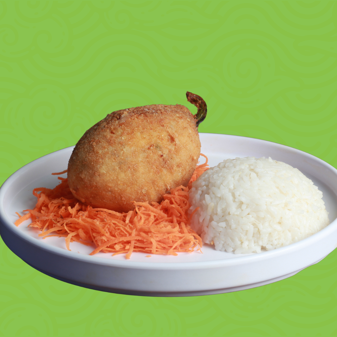 1 Pieza. Chile caribe capeado, relleno de philadelphia y chihuahua e ingrediente a elegir (res, pollo o camarón). Acompañado de arroz blanco.
