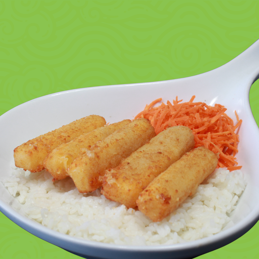 Dedos de queso empanizado. Acompañado de arroz blanco. 5 piezas.
