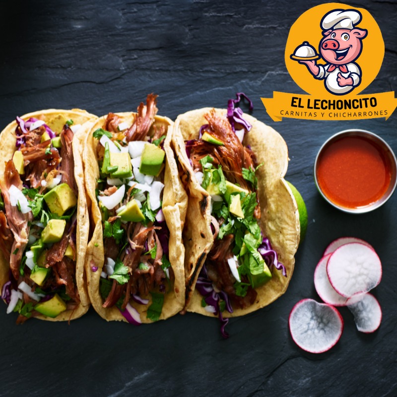 1 kg de carnitas, acompañado de salsa pico de pájaro, cebolla con chile habanero, tortillas recién hechas a mano.