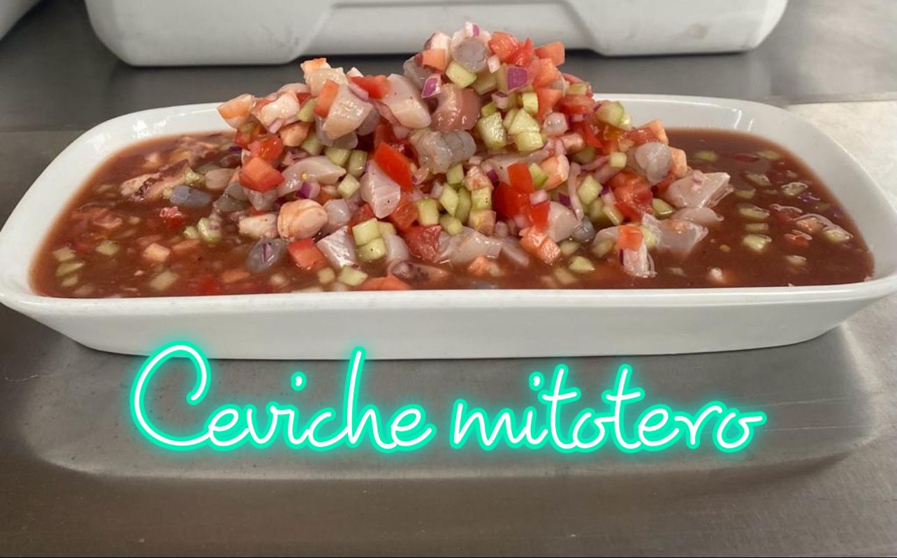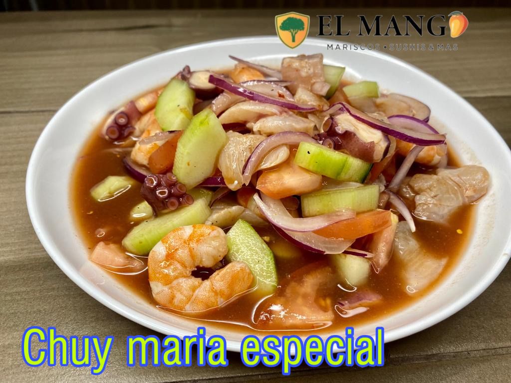 Camarón curtido, pepino, cebolla, con salsa de la casa.