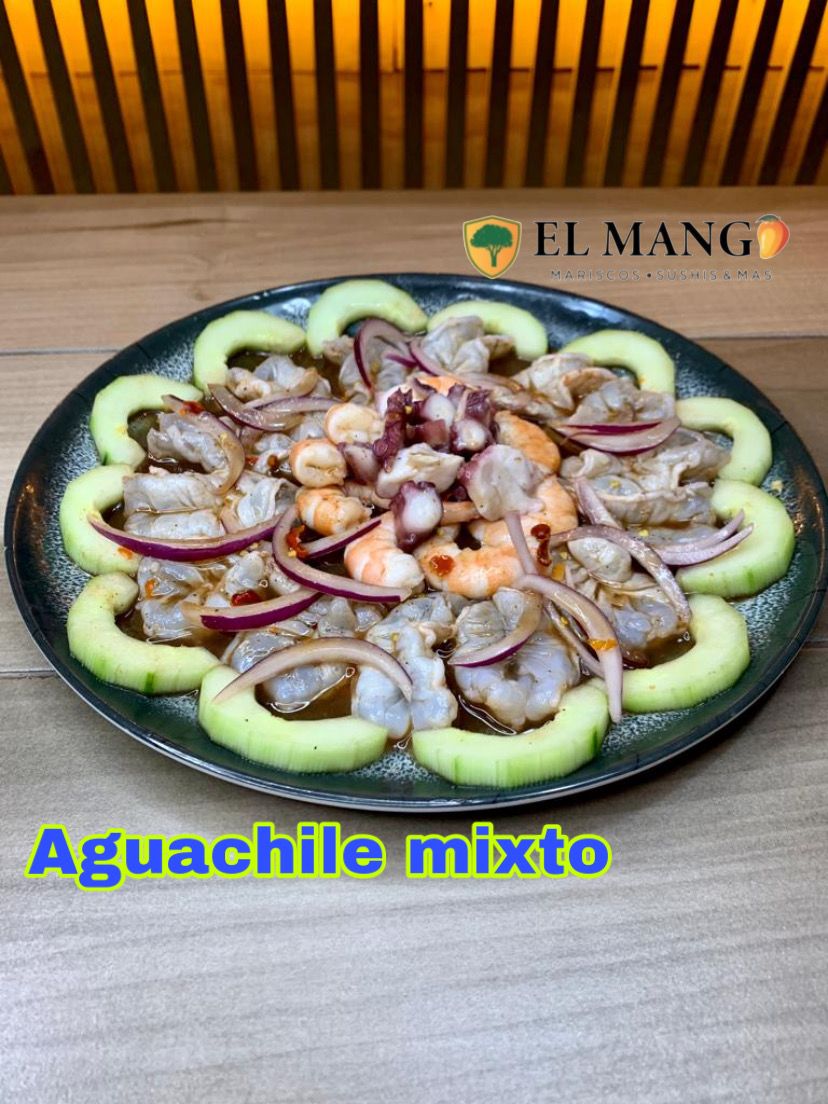Camarón cocido, camarón crudo, atún, mango y kanikama.