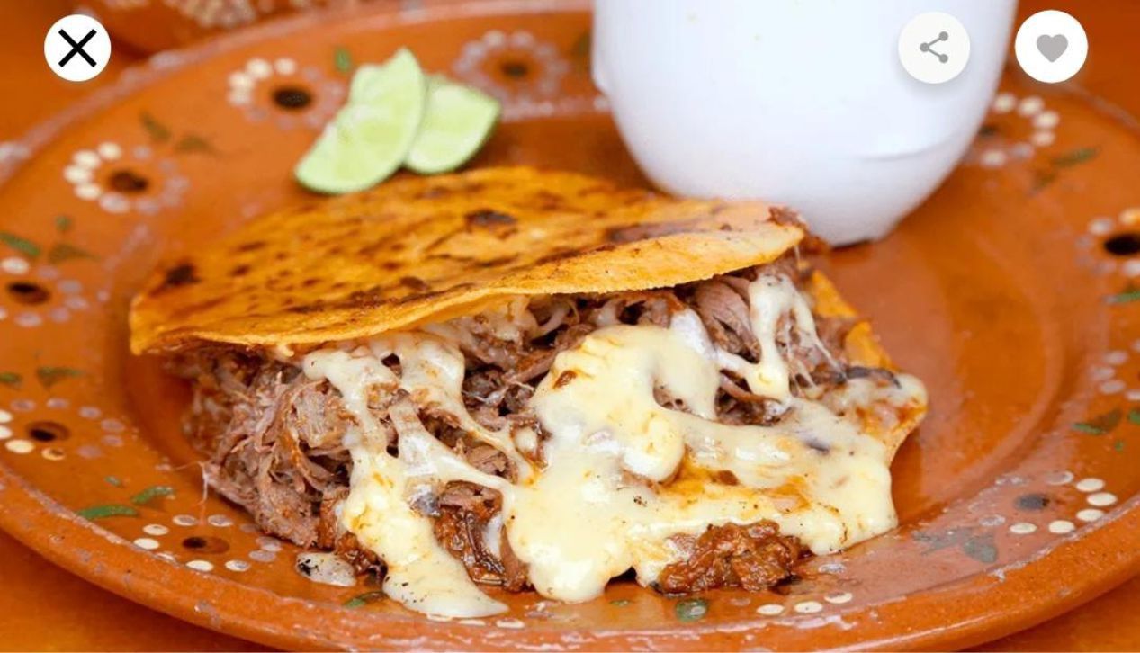 agua de jamaica quesadilla de harina birria taco de birria con queso