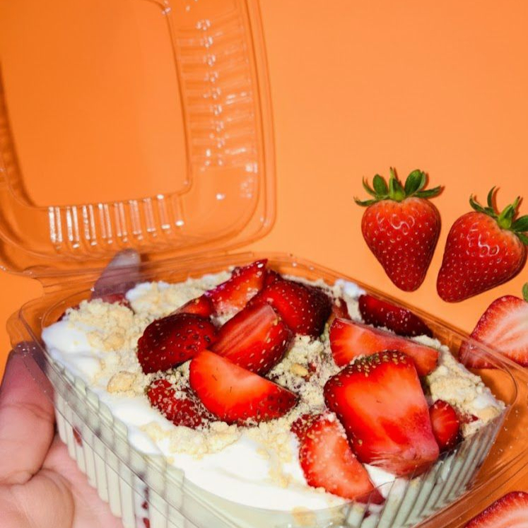 fresas naturales y de caja, crema de la casa, pay de queso nieve vainilla o chocolate