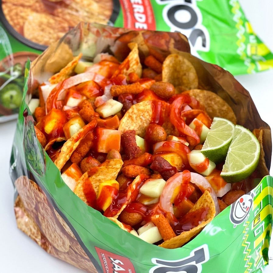 Tostitos o Sabritas a elegir preparadas con cacahuate, pepino,salchicha, klamato (en vaso)