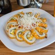Bolita empanizada rellena de una mezcla de trocitos de chile anaheim, camarón, marlín, tocino, tampico y los tres quesos.