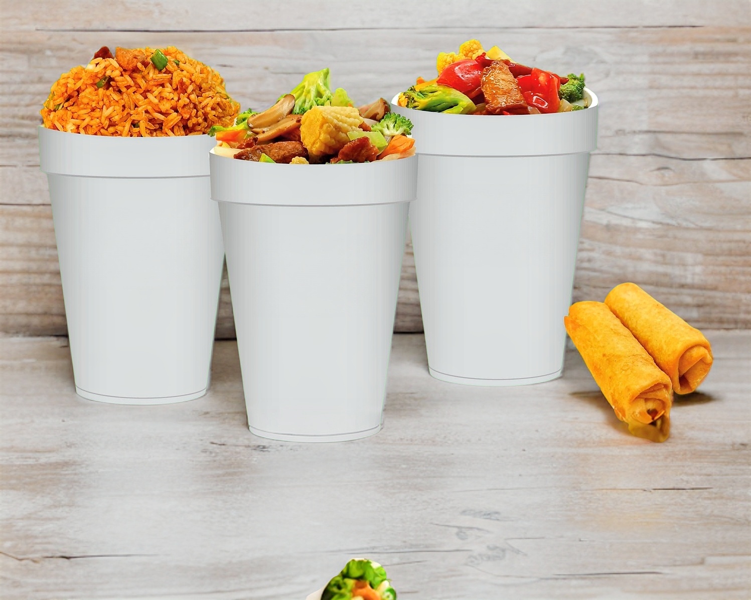 Rollo de Verduras.*2 + Arroz Frito Litro*1 + Litro de Guiso..*2