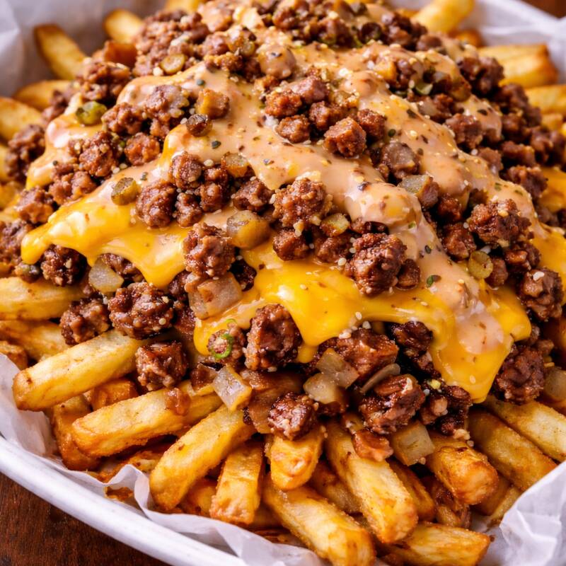 Porcion de 200 Gramos de Crujientes papas a la francesa cubiertas con 1 carne smash jugosa troceada, derretidas con queso americano y bañadas con nuestra clásica salsa especial. Una combinación irresistible, llena de sabor y perfecta para antojarte en cualquier momento.