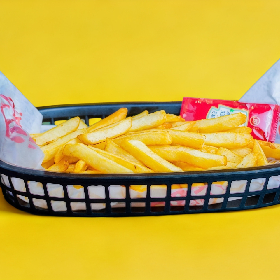 Crujientes papas fritas espolvoreadas con pimienta limón acompañadas con cátsup.