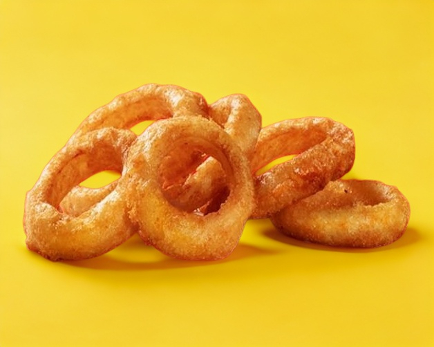 Crujientes aros de cebolla, doraditos en nuestra cocina, resaltando el sabor dulce de la cebolla en cada bocado, se sirven con ranch y cátsup.