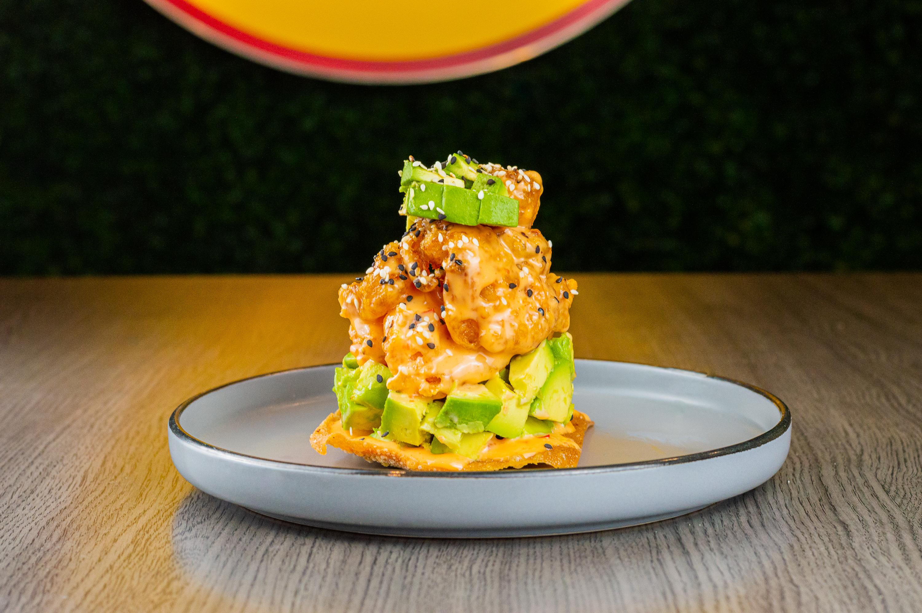 Camarón roca, cubos de aguacate, cebollín, ajonjolí negro y aderezo. Todo un clásico de sabor.50 g. de Camarón.