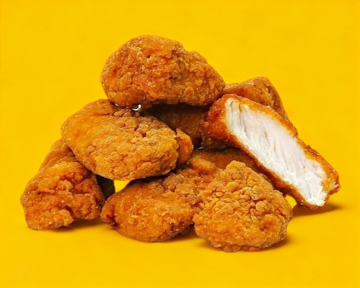 Crujientes trozos de pechuga de pollo naturales, con papas o sin papas.
