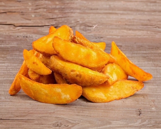 Deliciosas papas gajos, cubiertas de crujiente capeado, acompañados con aderezo ranch.