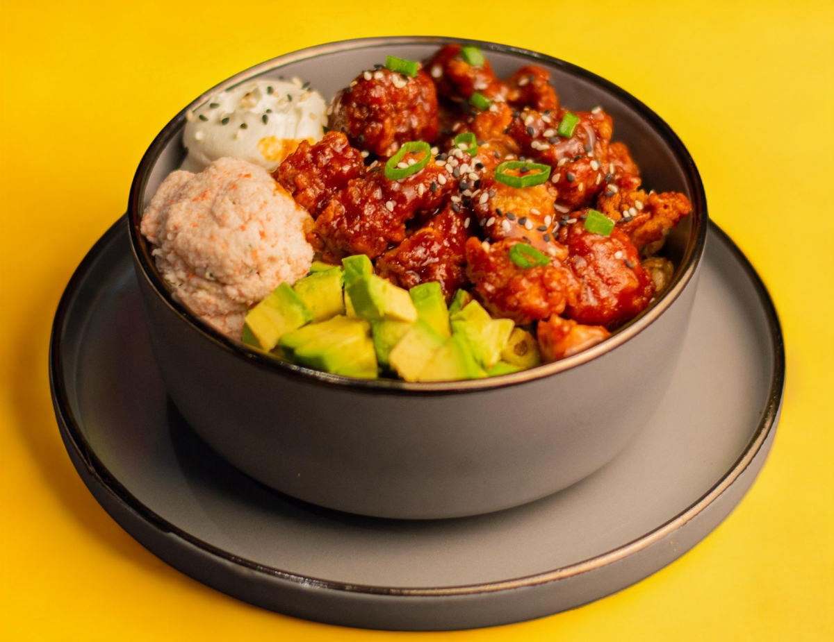 Lo clásico siempre se puede mejorar y para eso nos pintamos solos. Un delicioso yakimeshi especiál bañado con nuestra pasta Spicy de quesos, tampico y coronado con nuestro toping estrella Dalary Crunch, sin duda un orgasmo de texturas en cada bocado. 30 gr res cocida picada. 50 gr pollo cocido picado