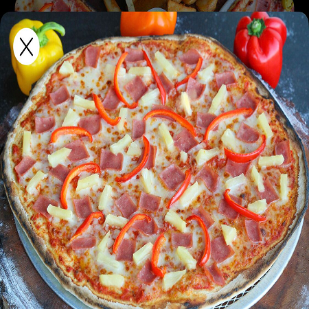 pizza a ala leña de 8pzs (jamon,piña,chile morron)