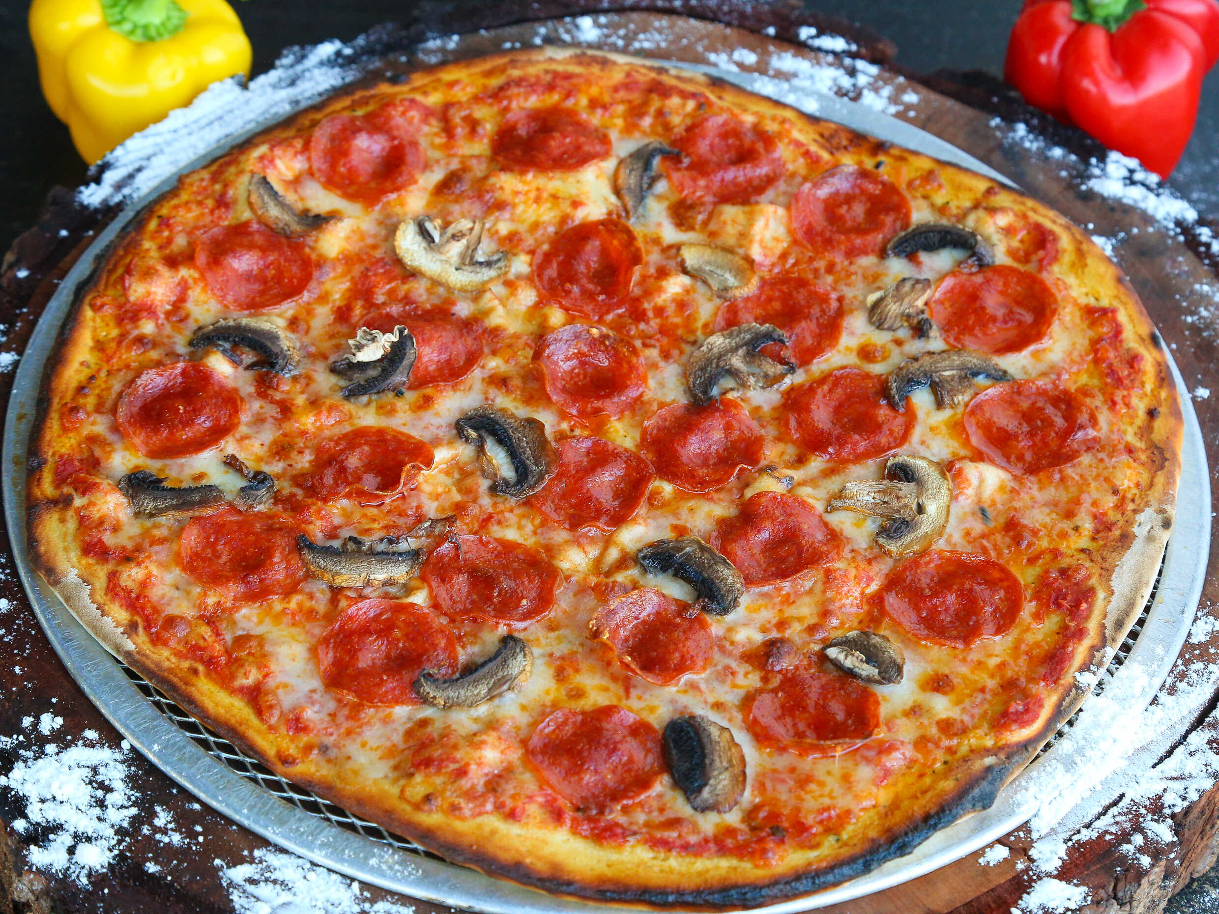 Pizza a la leña (Pepperoni y champiñones) 8 pls