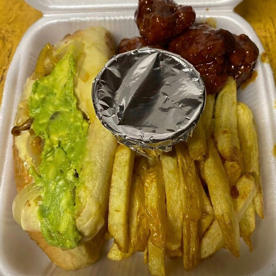 Hot Dog especial con media orden de boneless (6) papas naturales, ranch y bebida