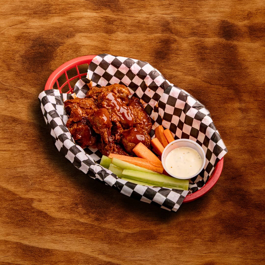 Pechuga de pollo preparados artesanalmente y bañados en tu salsa favorita: BBQ, búfalo,mango habanero, BBQ HOT. acompañado de aderezo ranch, vegetales y papas a la francesa.