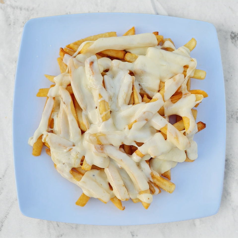 Papas francesas bañadas con queso fundido.